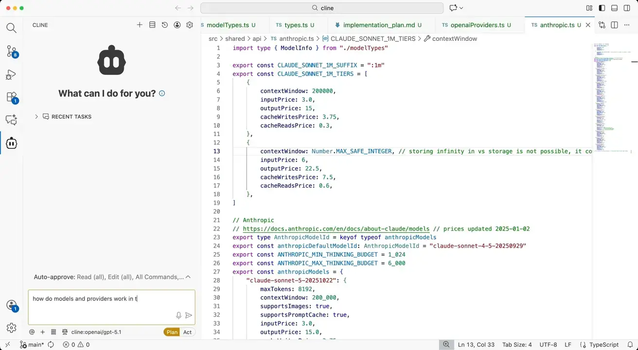 Cline is an open-source autonomous coding agent that runs inside VS Code. It can read and write files, run terminal commands, open a browser, and chain all of those actions together to complete a task. Every action requires your approval before it executes, so you stay in control even when Cline is working autonomously.