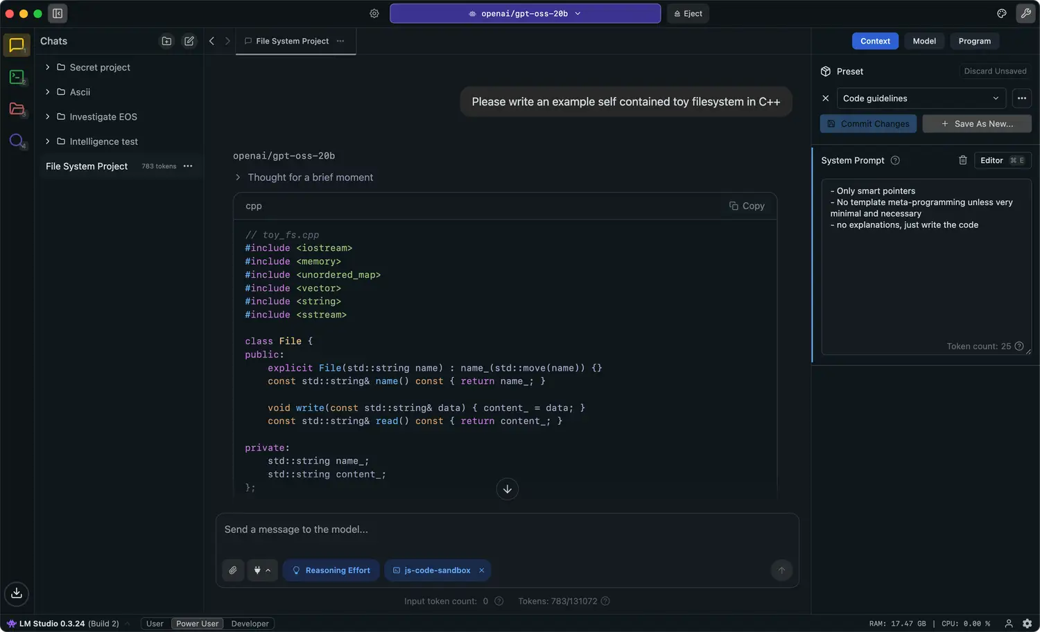 The main advantage over Ollama is the graphical interface. Ollama is command-line-first. LM Studio is point-and-click. You can test a model in its built-in chat window before wiring it up to your code editor, which helps you pick the right model for your hardware before committing. It supports all major open model formats and has a background server mode for running without a visible window. Free to use, not open source.