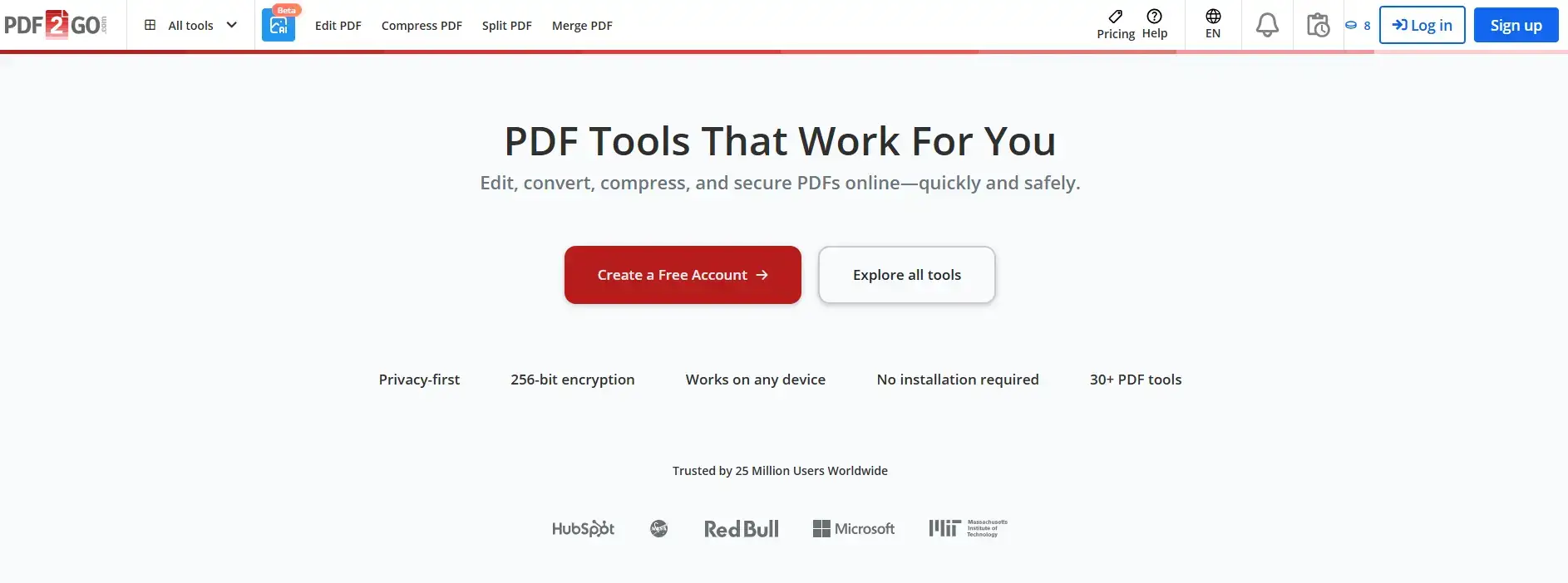 An account is required to track your balance. Files are automatically deleted after 24 hours. The tool covers editing, conversion, compression, OCR, and basic AI features. If you only need a task or two, the free credits stretch far enough.