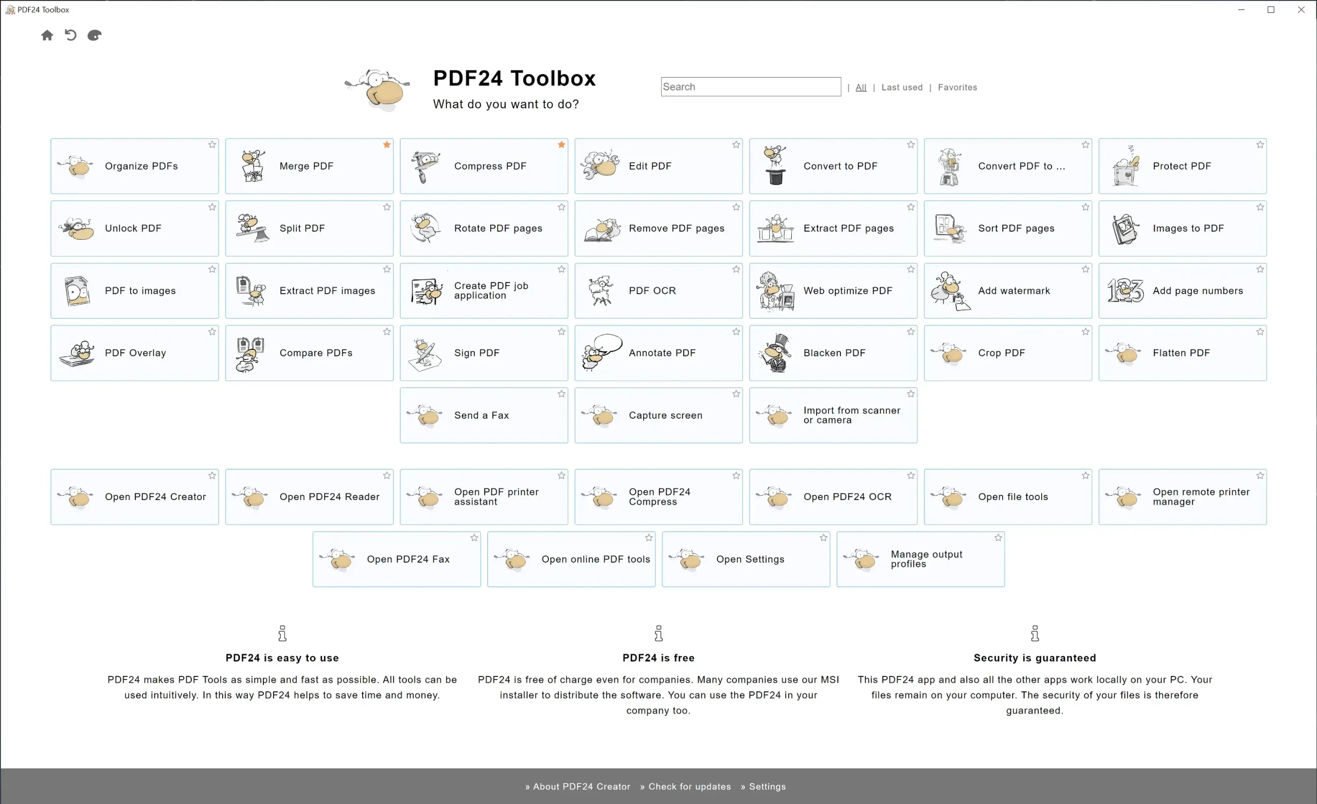 It also handles merging files, splitting them apart, compressing large PDFs, converting formats, and turning scanned pages into searchable text. The interface is functional rather than modern, but few free tools cover this much ground. PDF24 is the pick if you process a lot of PDFs regularly and want a local tool that works completely offline. Completely free for personal and commercial use. Available from pdf24.org or the Microsoft Store.