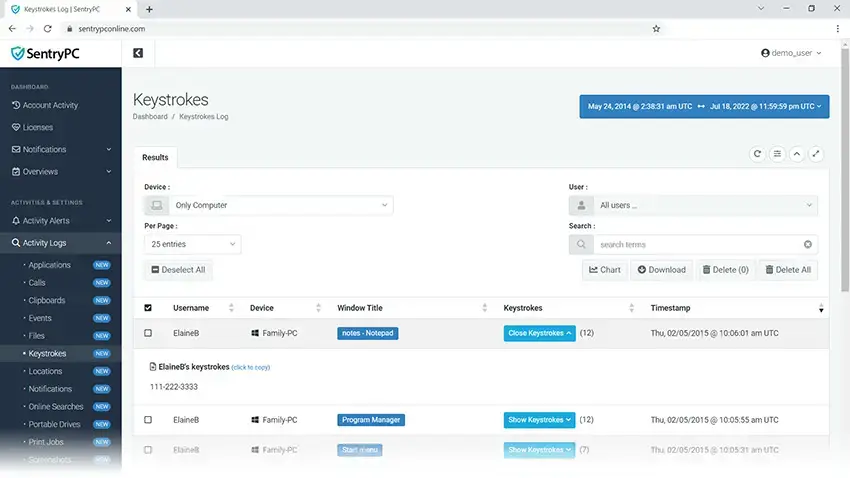 SentryPC purges logs older than one month automatically. If you ever need to review older activity, download and archive those logs locally before they disappear. Your cloud account has a download option that lets you filter by device, user, and date range.